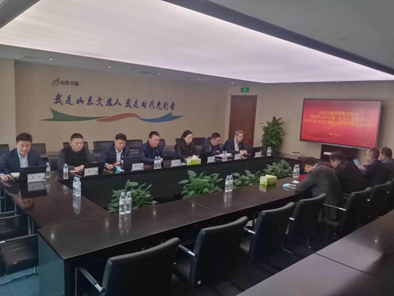山東文旅投資集團黨委理論學習中心組(擴大)會議要求,在下一步工作中,一要提高政治站位,深化思想認識。要充分認識這次大會的重要意義,把學習貫徹會議精神作為當前和今后一個時期的首要政治任務,按照山東文旅集團黨委書記、董事長高洪雷的要求,帶著感情學、帶著使命學、帶著責任學、帶著問題學、結合實際學、原原本本學、第一時間學,把黨的二十大精神學深刻、學透徹,在學思踐悟、真信篤行上下功夫。二要找準目標定位,狠抓工作落實。要把學習貫徹落實會議精神與推動文旅事業高質量發展緊密結合,對照年度經營任務目標和重點工作要求,扛牢責任,明晰路徑,切實把學習成果轉化為具體有力的工作舉措和實實在在的發展成效。三要結合自身實際,積極融入大局。要全面深入融入集團公司“54331”戰略發展規劃,優化投資思路,聚焦優質項目,全力打造高效優質文旅投資平臺,在全面做好“四篇文章”上奮力作為,為全面建設社會主義現代化國家、全面推進中華民族偉大復興貢獻力量。