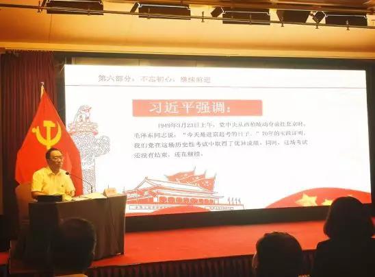 根據“不忘初心、牢記使命”主題教育工作安排,8月8日下午,銀座旅游集團黨委副書記、總經理周立剛講主題教育專題黨課。泉城大酒店黨委委員,各支部書記及支部委員,各酒店總經理參加了學習。
