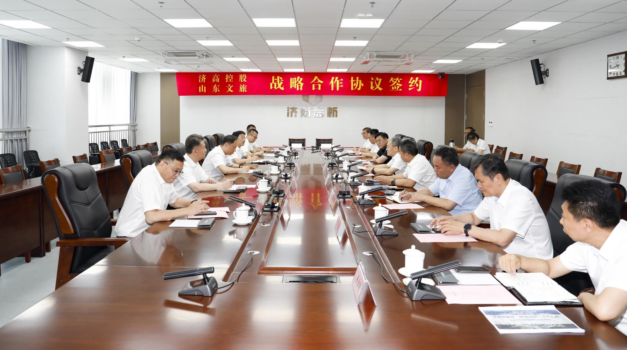 6月10日,山東文旅集團有限公司與濟南高新控股集團有限公司戰略合作協議簽約儀式在濟南舉行。濟南高新區黨工委副書記、管委會常務副主任楊福濤,山東文旅集團黨委書記、董事長丁藝出席并講話。簽約會由濟南高新區黨工委委員、管委會副主任高鵬霄主持。濟高控股集團黨委書記、董事長李濤參加儀式。