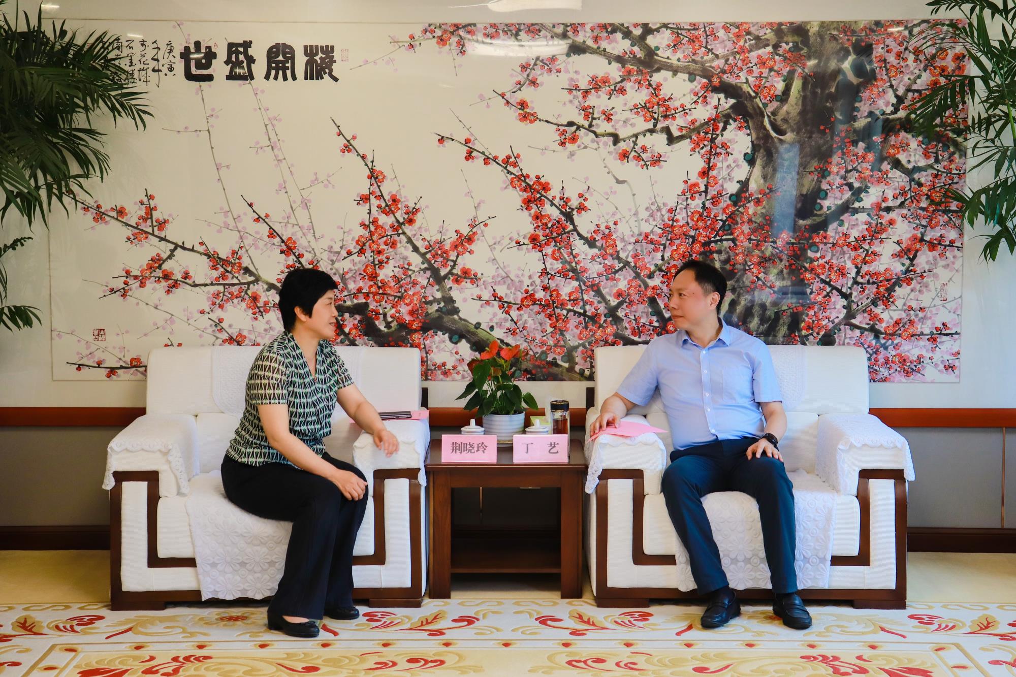 6月12日,煙臺文化旅游職業學院黨委副書記、院長荊曉玲一行到山東文旅集團座談交流,集團黨委書記、董事長丁藝會見。