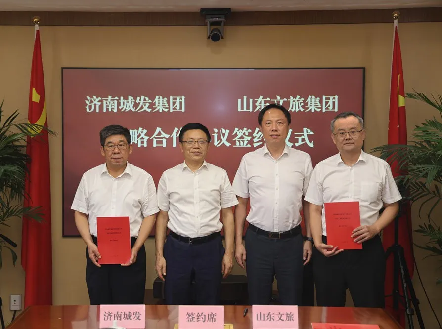 7月29日,山東文旅集團(tuán)與濟(jì)南城市發(fā)展集團(tuán)合作協(xié)議簽約儀式暨交流座談會(huì)在集團(tuán)總部舉行。濟(jì)南城市發(fā)展集團(tuán)黨委書(shū)記、董事長(zhǎng)殷光偉,山東文旅集團(tuán)黨委書(shū)記、董事長(zhǎng)丁藝出席儀式并講話。