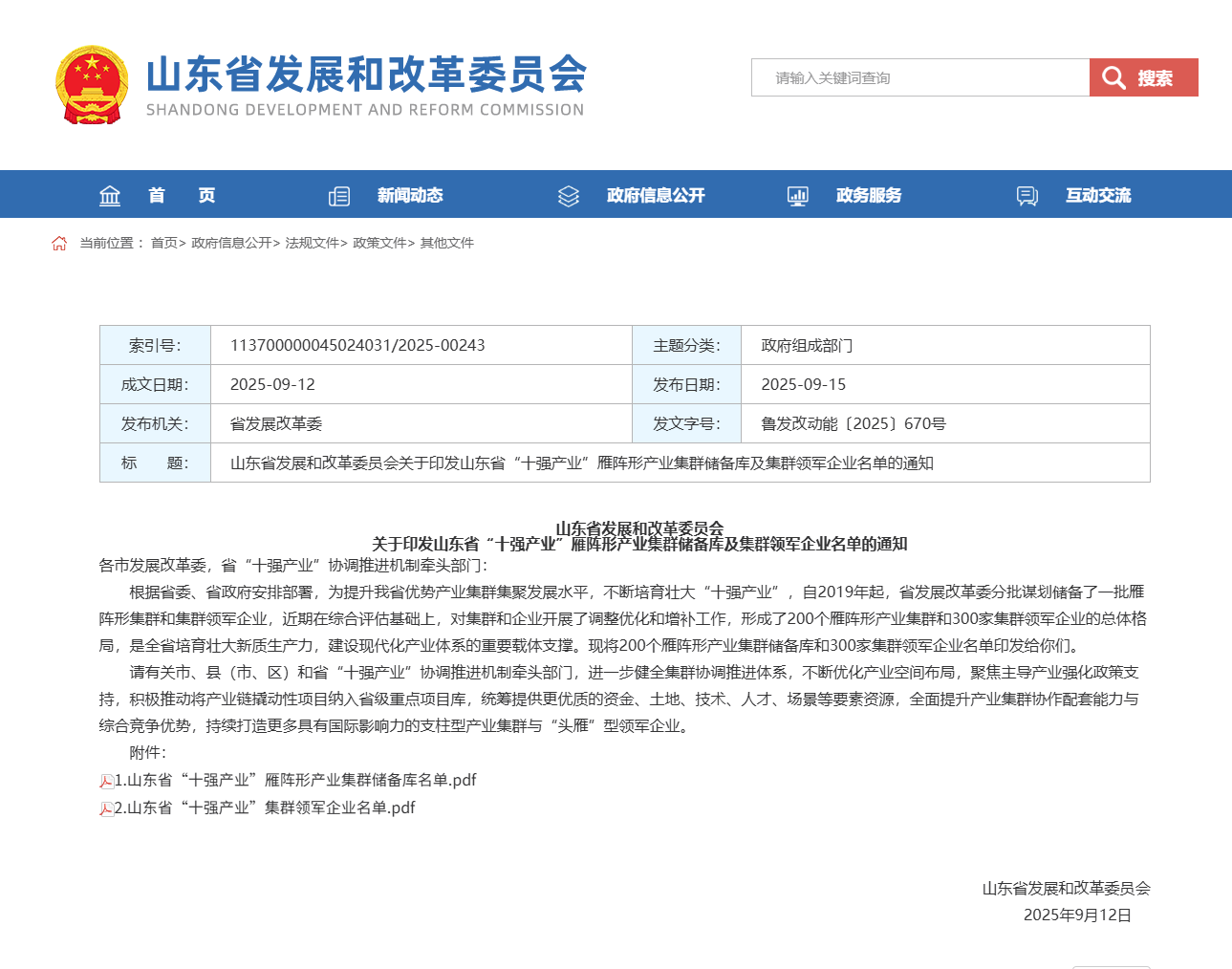 “十強產(chǎn)業(yè)”涉及山東的主導(dǎo)產(chǎn)業(yè)、優(yōu)勢產(chǎn)業(yè)、潛力產(chǎn)業(yè),代表了先進(jìn)生產(chǎn)力的發(fā)展方向。圍繞“十強產(chǎn)業(yè)”發(fā)展目標(biāo),通過動態(tài)管理、精準(zhǔn)篩選,全省逐步構(gòu)建起層次清晰、協(xié)同聯(lián)動的產(chǎn)業(yè)發(fā)展體系,目前形成了200個雁陣形產(chǎn)業(yè)集群和300家集群領(lǐng)軍企業(yè)的總體格局,是全省培育壯大新質(zhì)生產(chǎn)力,建設(shè)現(xiàn)代化產(chǎn)業(yè)體系的重要載體支撐。