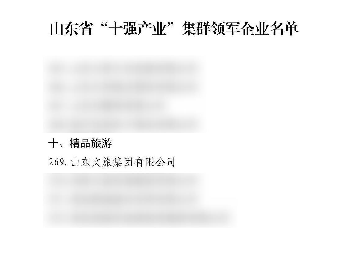 近日,山東省發(fā)展和改革委員會印發(fā)了“十強產(chǎn)業(yè)”雁陣形產(chǎn)業(yè)集群儲備庫及集群領(lǐng)軍企業(yè)名單,山東文旅集團(tuán)成功入選精品旅游產(chǎn)業(yè)集群領(lǐng)軍企業(yè)。