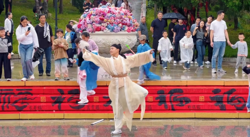 在空間改造方面,景區采取“微改造、精提升”策略,對山門至過山車站點的功能通道進行文化重塑,打造為“百福路”文化體驗廊道。通過鋪設百福地刻、設置互動裝置中國大鼓、心愿墻及投壺、木射等傳統游戲體驗區,并配合定時非遺巡游表演,將通行空間成功轉型為文化展示與互動場域,增強游客行進過程中的文化感知。