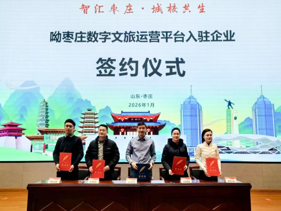 簽約環節,棗莊市文化和旅游局與棗莊學院簽署戰略合作協議,攜手推進文旅產學研深度融合?!斑蠗椙f”數字文旅運營平臺與棗莊市蘭祺酒店有限公司、微山湖濕地集團有限公司、翼龍文化旅游投資發展有限公司、圣匠魯班有限公司等多家企業簽署入駐協議,進一步豐富了平臺業態與服務內容。