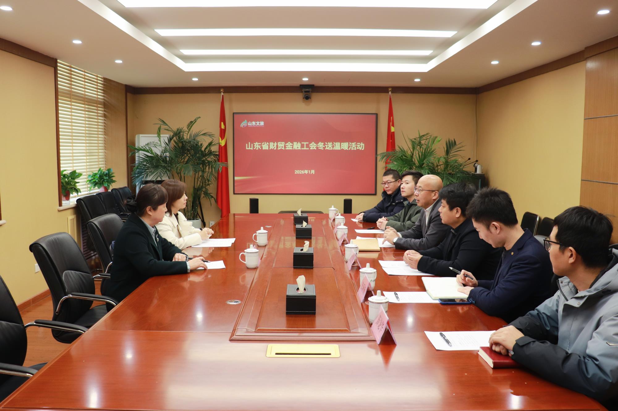 1月28日,山東省財貿金融工會三級調研員辛瑋靜,省財貿金融工會副主席、省總工會機關工會主席張學超一行到山東文旅集團開展冬送溫暖活動,走訪慰問困難職工、一線職工并座談交流。山東文旅集團黨委副書記、職工董事、工會主席孫超參加慰問。