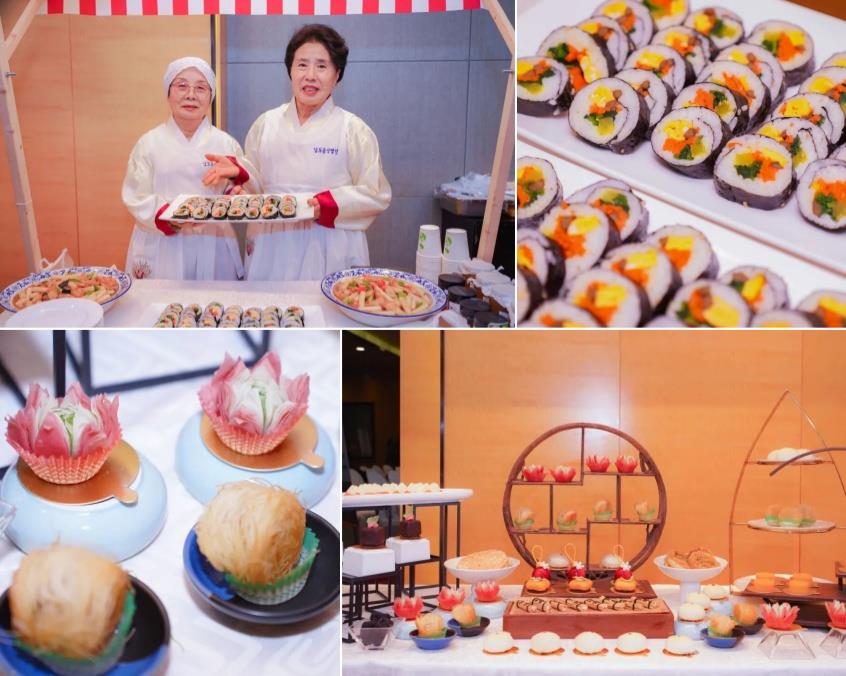 開幕式上,參會嘉賓學習制作山東泉城大包、韓國紫菜包飯,品嘗魯韓特色零食和小吃。其中山東泉城大包由山東文旅酒店集團廚師孫在嬌、張延霞現場制作,展現了魯菜的精湛技藝與獨特魅力。現場氣氛熱烈友好,雙方以美食為橋梁,共敘深厚情誼,擘畫合作新篇。