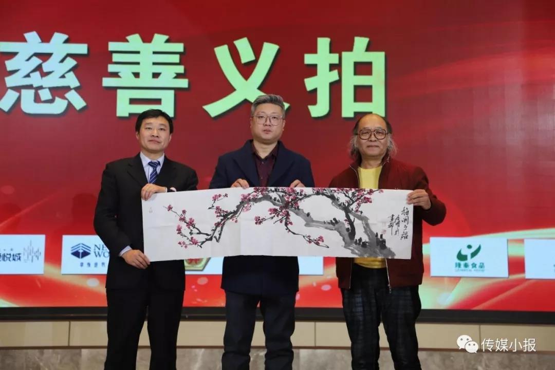 魯商傳媒集團黨委委員、副總經理,魯網總經理、總編輯王法爭(左一 )在義拍現場