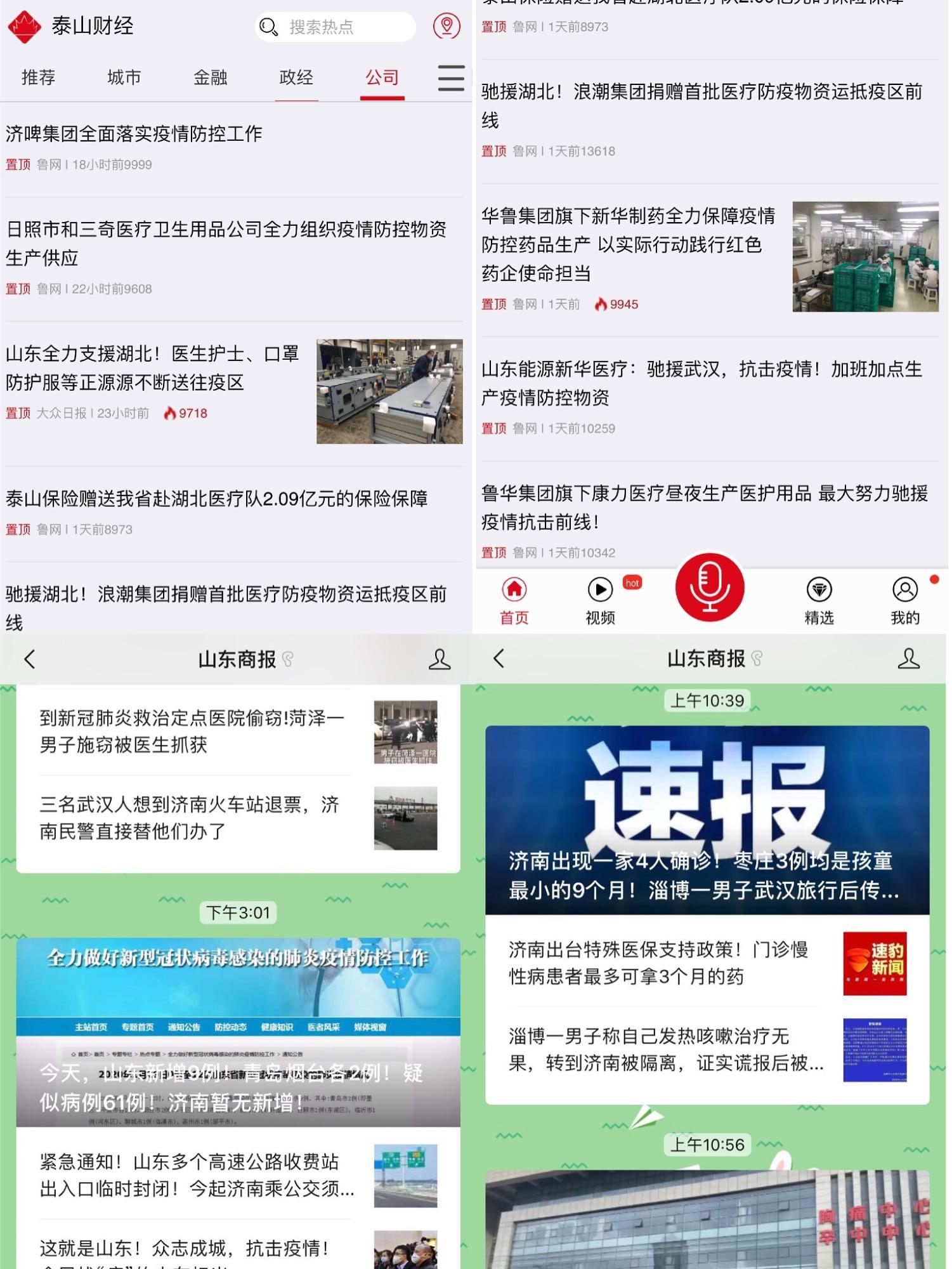 魯商傳媒旗下各新媒體終端還主動聚焦節日市場供應,聚焦國企擔當。山東商報和魯網原創報道了魯商集團保節日市場價穩量足、濟南投放首批儲備白菜、山航專機運送護目鏡等重要新聞。《總理的承諾,我們來兌現!援助武漢,山東“悶聲”干大事!》和《落實總理承諾,爭分奪秒8小時》體現了深度原創與整合報道能力。此外,還發揮山東商報和魯網的財經報道優勢,主動對接相關企業,在疫情專題、泰山財經客戶端和魯網“山東國資”頻道及時發布山東國資系統阻擊疫情的相關新聞,對魯商集團、山東能源、華魯集團等山東國企在關鍵時期的責任擔當做了充分報道。