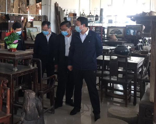 在陽信縣水落坡民俗文化產業園,高洪雷一行考察了鼎龍、魯木匠、寰宇盛大骨雕、瑞鑫等民俗文化品牌。水落坡鎮古典家具行業歷史悠久、資源豐富,是“中國古典家具之鄉”“中國明清家具、木雕、石刻集散基地”“中國首個收藏文化名鎮”。高洪雷對相關產業發展現狀進行了調研。