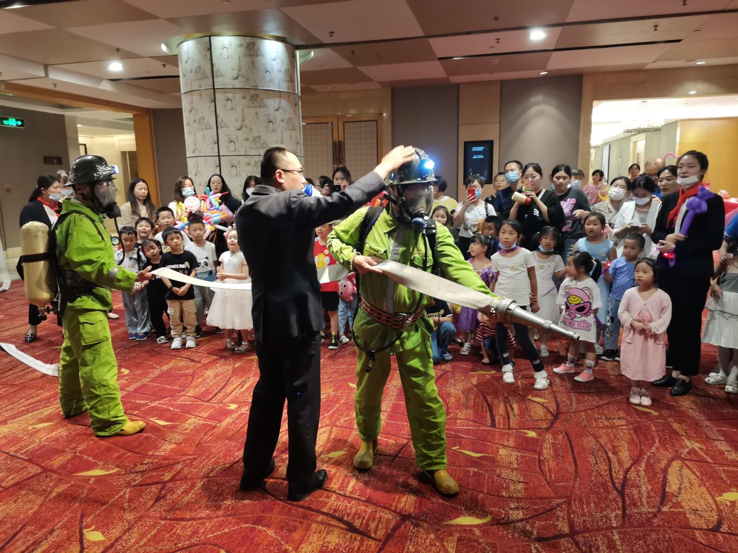 “六一”兒童節當天,銀座旅游集團旗下酒店消防安全課堂開課,安全專業人員同孩子們一起分享安全知識,展示酒店消防裝備,現場模擬消防演習、學習帶防煙面具、體驗滅火器使用等,播撒消防安全的種子,將安全融入快樂“六一”,讓孩子們對消防安全有了新認識。