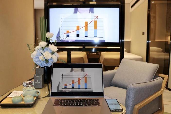 當(dāng)我們走進(jìn)泉城大酒店大堂的那一刻起,智慧酒店就已經(jīng)上線了:自助登記機(jī)辦理入住僅需30秒,退房只需10秒,同時支持在線選房;通過面容識別自動開啟房門,專屬智能語音助手為房間設(shè)備進(jìn)行操控;功能體驗齊全,支持視頻客戶端、手機(jī)設(shè)備屏幕鏡像投、電腦投屏,無論是休閑娛樂還是商務(wù)辦公,都能為顧客提供更好體驗。