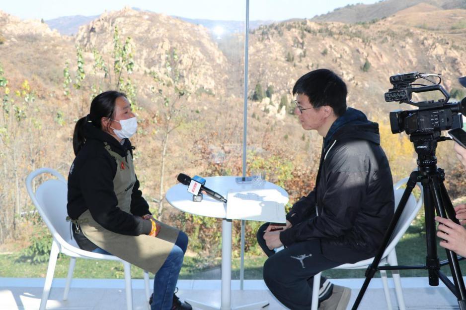 新華社記者在九女峰書房采訪東西門村就地就業的村民楊慶花