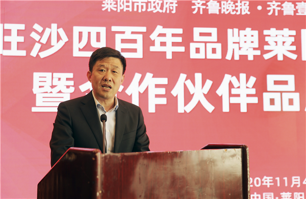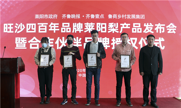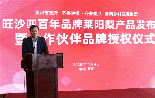 11月4日,山東省國欣文化旅游發展集團旗下魯商鄉村發展集團(簡稱“鄉發展”)、齊魯晚報·齊魯壹點與萊陽市照旺莊鎮政府在萊陽舉行“旺沙四百年”萊陽梨產品發布會暨合作伙伴品牌授權儀式。大眾報業集團社委委員、齊魯報系黨總支書記、齊魯晚報總經理張天衛,鄉發展外部董事、財務總監王蘇洲,萊陽市照旺莊鎮黨委書記李志軍等出席活動。