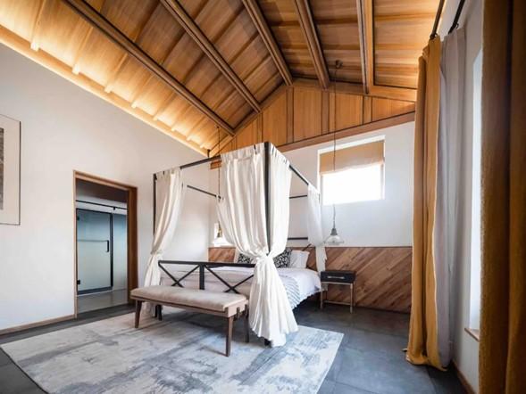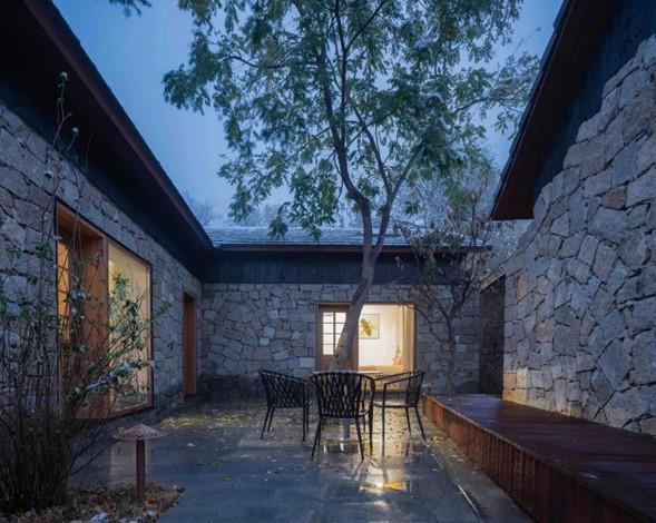 整體的民宿院落保留了石墻的主題,有些有意識地復原了殘垣斷壁的片段。相對輕盈的屋頂結構,與平臺一樣,仿佛從厚重遠久的墻體里生長出來的新生命。原本方案設計的一些裝飾性線條,在項目進行的過程當中被簡化舍棄了,我們更想表達出北方院落的清爽與果斷。