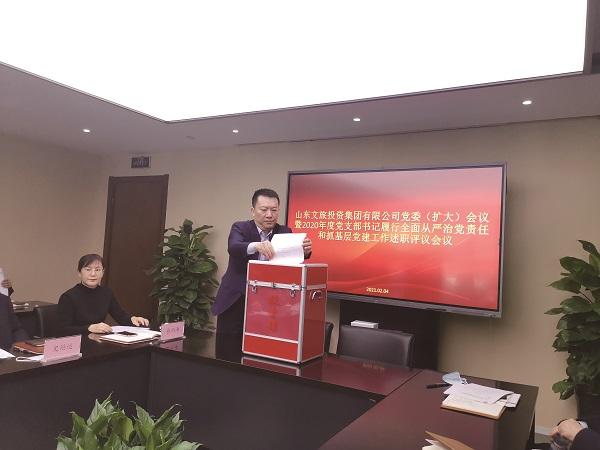 2月4日上午,山東文旅投資集團有限公司(簡稱“文旅投資”)召開黨委(擴大)會議暨2020年度黨支部書記履行全面從嚴治黨責任和抓基層黨建工作述職評議會議。文旅投資黨委書記、董事長王化龍主持會議并講話。國欣文旅團委書記、政工人力資源部副部長楊立華到會指導。
