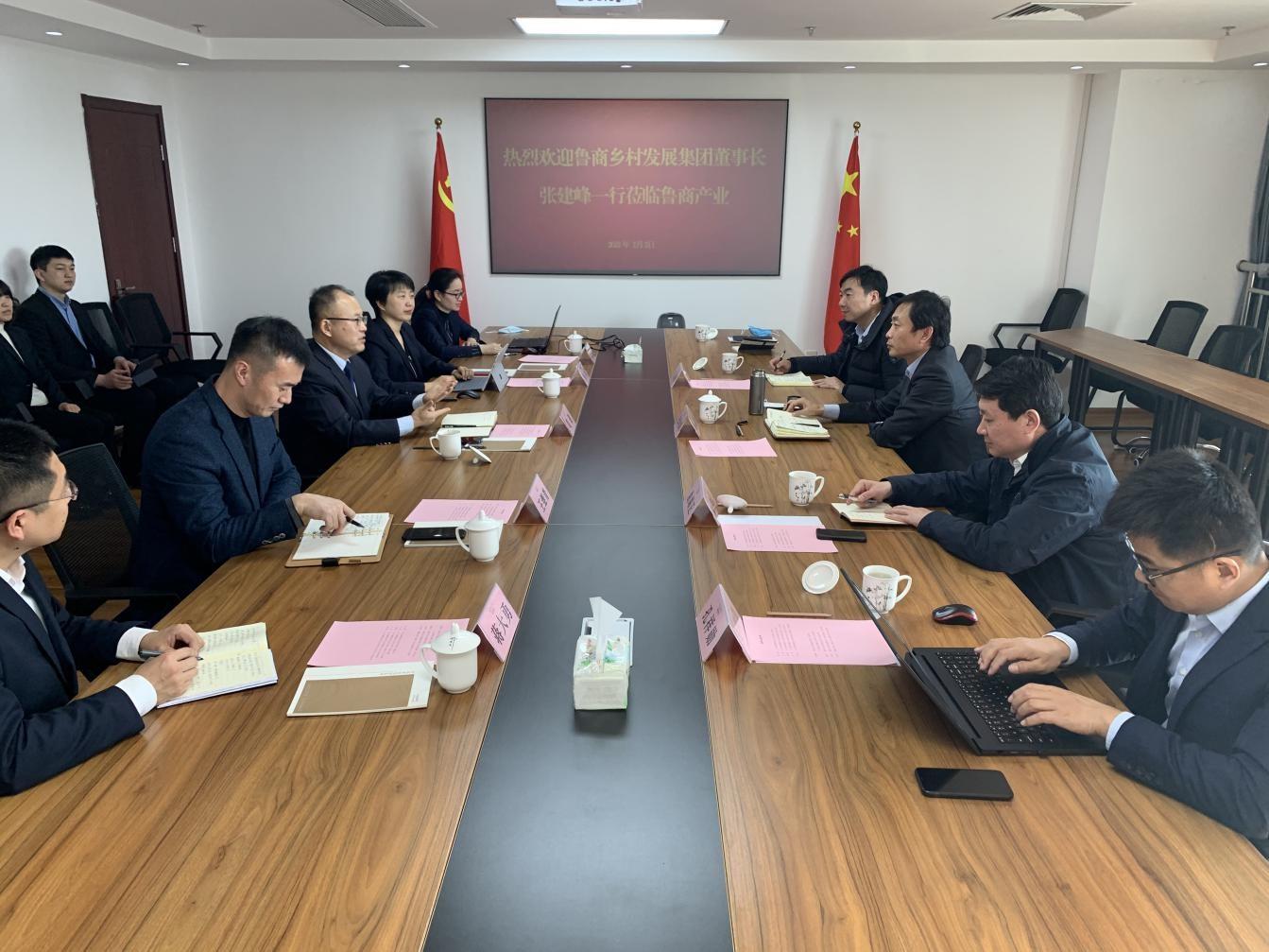 2月2日上午,魯商鄉村發展集團(簡稱鄉發展)董事長張建峰帶隊到山東省魯商集團產業投資有限公司(簡稱魯商產業)開展交流座談。魯商產業董事長葛健、副總經理劉穎,營發中心、業務支持部、發展中心有關負責人員,鄉發展副總經理曲端正,外部董事、財務總監王蘇洲,魯商陳角峪(新泰)鄉村發展有限公司負責人員參加會議。