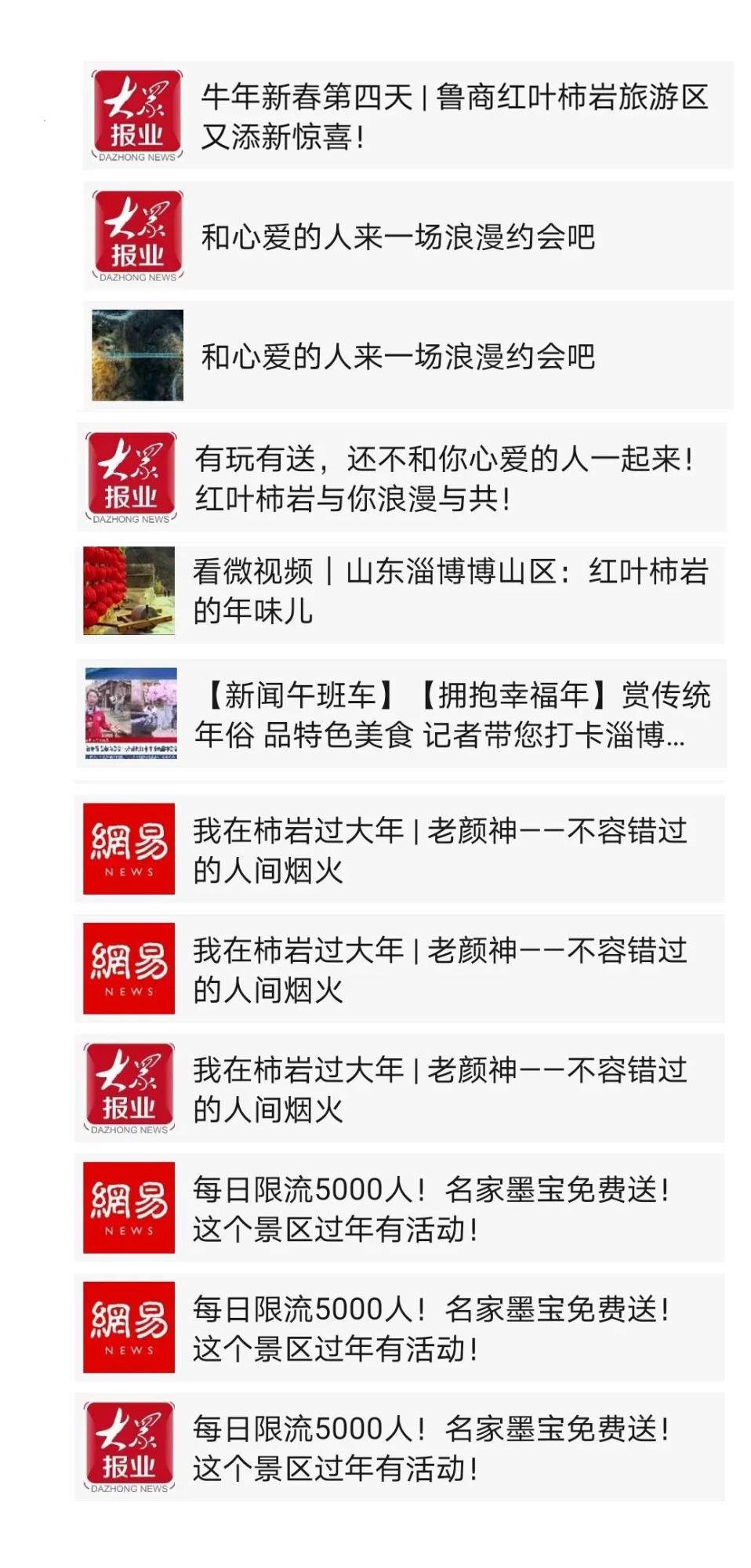 為滿足游客旅游休閑需求,山東文旅景區集團積極推廣景區文化活動,各景區通過微信平臺及抖音號每天推送旅游信息及視頻,引導游客前往游覽。其中,紅葉柿巖景區假期抖音話題瀏覽量累計幾千萬次,并榮登淄博市同類景區游客接待量第一名,成為淄博市春節假期休閑旅游的熱門景點。
