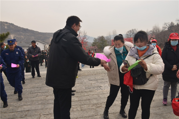 活動最后,黨員們在景區開展森林防火巡查活動,重點向群眾宣傳森林火災防范要點,介紹當前森林防火形勢,及時發現、勸阻苗頭性隱患,確保不留隱患、不留死角,杜絕火災發生。
