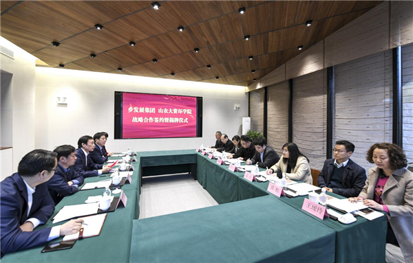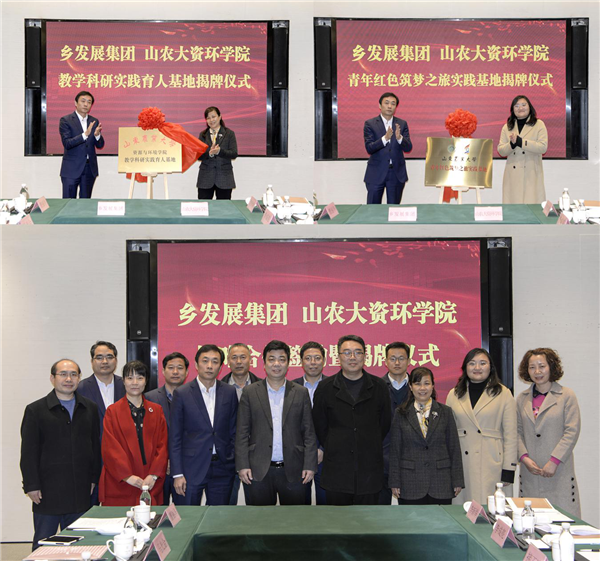 3月12日,魯商鄉村發展集團有限公司(簡稱“鄉發展集團”)與山東農業大學資源與環境學院(簡稱“山農大資環學院”)在泰山·九女峰“云合景從”會議室召開戰略合作簽約暨揭牌儀式。山農大資環學院黨委書記馮國營,院長、教授諸葛玉平,山東農業大學教務處副處長接玉玲,學工處副處長姜芳,鄉發展集團董事長張建峰等參加活動。鄉發展集團副總經理馬光金主持簽約暨揭牌儀式。