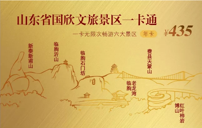 該卡由山東文旅景區集團整合旗下費縣天蒙山,臨朐沂山、石門坊、老龍灣,新泰新甫山,博山紅葉柿巖等6家優質景區資源,以超優惠的價格面向全省乃至全國公開發行。