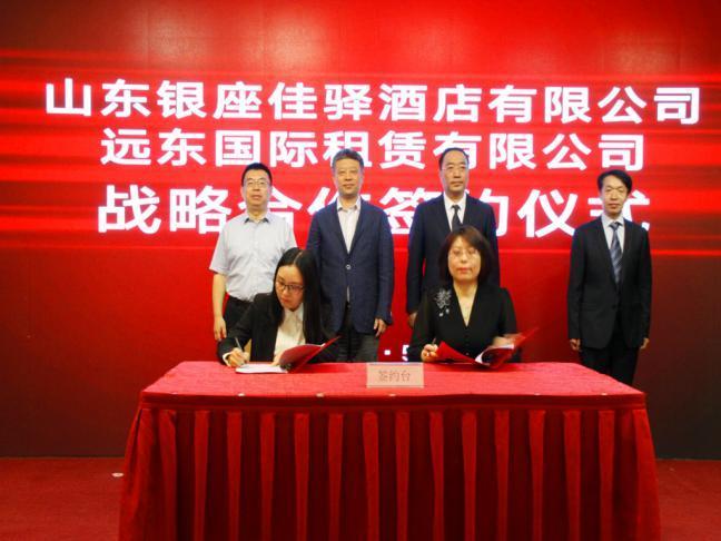 5月30日上午,泉城大酒店,銀座佳驛投資加盟招商會(huì)現(xiàn)場(chǎng),首批8家文度酒店合作伙伴聯(lián)合簽約,銀座佳驛與遠(yuǎn)東國(guó)際租賃戰(zhàn)略合作簽約。