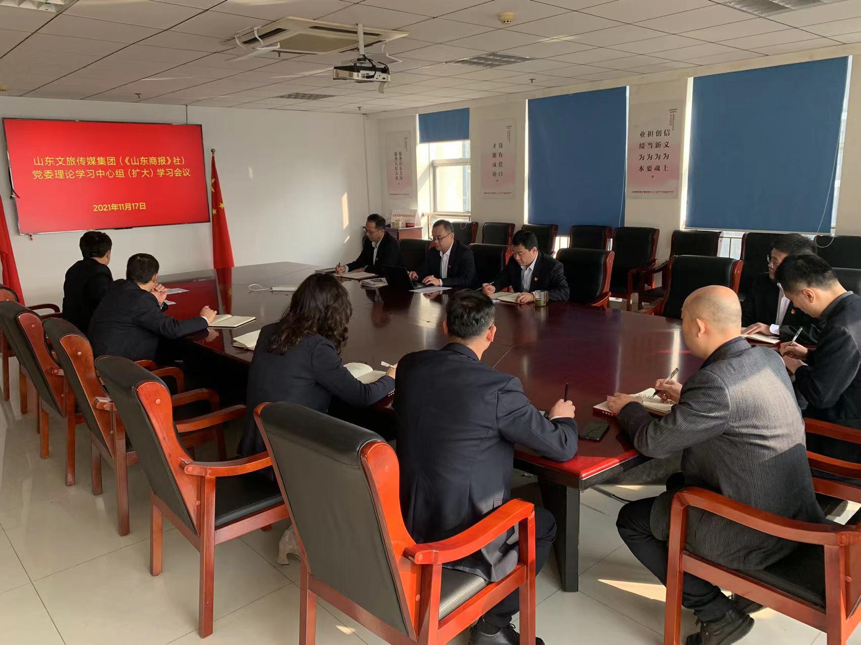 11月17日,山東文旅傳媒集團召開黨委理論學習中心組(擴大)學習會議,深入學習貫徹黨的十九屆六中全會精神,安排部署學習宣傳落實工作。山東文旅傳媒集團黨委書記、董事長龐道鋒主持會議。