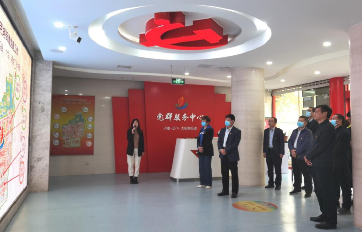 活動現場,在街道工作人員的引領下,全體黨員參觀黨群服務中心的教育、管理、服務、活動等功能區塊,了解街道黨組織構成、黨員群眾積分管理、社區信息平臺建設等情況。