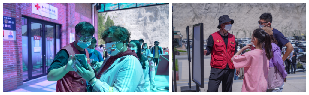 他們起早貪黑,不懼風吹日曬,堅守在崗位上查綠碼、量體溫,耐心回答問詢,熱心幫扶游客,有他們在的地方,始終有條不紊,溫暖有光!