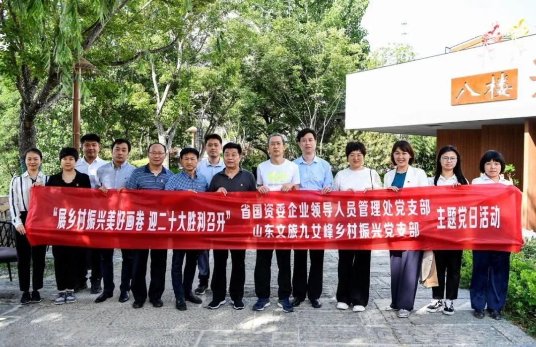展鄉村振興美好畫卷,迎二十大勝利召開。5月27日,省國資委企業領導人員管理處黨支部、九女峰鄉村振興黨支部在山鄉集團泰山·九女峰鄉村振興示范區開展聯建共建主題黨日活動。省國資委黨委委員、副主任、一級巡視員邵澤武,山東文旅黨委副書記、總經理丁藝,黨委委員、紀委書記王振江,首席戰略官、山鄉集團黨委書記、董事長張建峰參加活動。