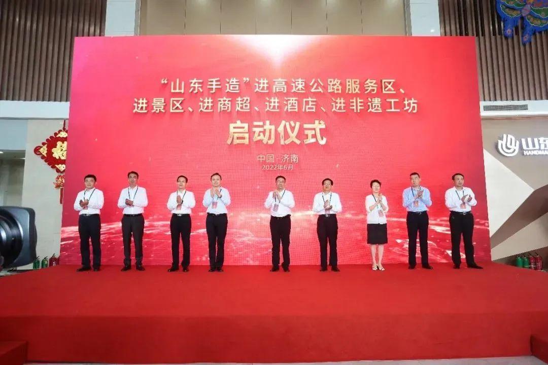 6月18日,省委常委、宣傳部部長白玉剛,副省長孫繼業出席“山東手造”進高速公路服務區、進景區、進商超、進酒店、進非遺工坊啟動儀式。