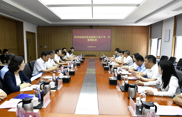 6月16日,重慶市巫溪縣政協主席、巫溪縣對口幫扶協同發展工作領導小組組長王芳一行到山鄉集團有限公司(以下簡稱“山鄉集團”)泰山·九女峰鄉村振興示范區考察洽談。泰安市政協副主席張步軍,泰安市發展改革委黨組成員、副主任田華,泰安市發展改革委副主任薛詔瑋,岱岳區副區長韓晗、政協副主席游志成,山東文旅集團首席戰略官,山鄉集團黨委書記、董事長張建峰陪同。