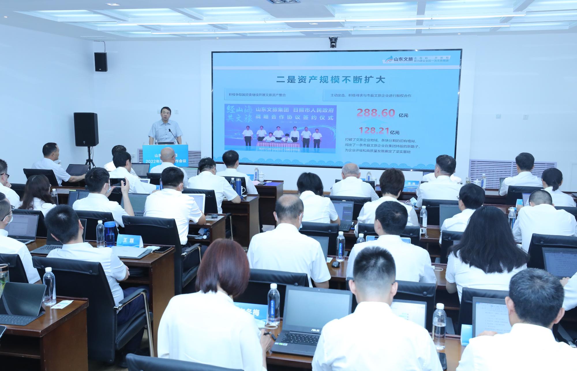 在剖析存在的問題與不足以及未來發展的機遇后,高洪雷對集團2022年下半年工作進行重點部署,要求深入學習貫徹黨的二十大精神,堅持以習近平總書記“三個走在前”的重要指示為根本遵循,以建設現代化經濟文化強省為己任,以“對標提升年”為抓手,按照“54331”的工作思路,實施平臺化、智能化、精品化、生態化、國際化“五大戰略”,做好鄉村振興、黃河戰略、海洋強省、山東手造“四篇文章”,實現由塊到鏈、由投資到投智、由競爭到協同“三個轉變”,形成活力文旅、磁力文旅、魅力文旅“三力文旅”,全力打造具有“世界眼光、國際標準、全國一流、山東特色”的文旅集團。