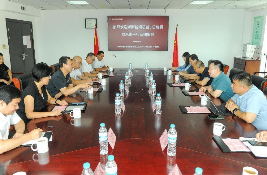 8月16日,澎湃新聞總裁、總編輯劉永鋼一行到山東文旅集團(tuán)所屬山東文旅傳媒集團(tuán)進(jìn)行考察交流,雙方就共同建設(shè)中國(guó)(山東)正能量短視頻庫(kù)、推出山東正能量短視頻計(jì)劃等方面進(jìn)行全方位、深層次戰(zhàn)略合作,并舉行簽約儀式。山東文旅集團(tuán)黨委書記、董事長(zhǎng)高洪雷會(huì)見(jiàn)劉永鋼一行并參加考察、簽約活動(dòng)。