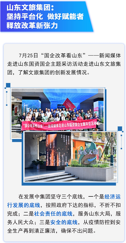 省國資委主辦的“國企改革看山東”——主題采訪活動第二期已圓滿收官,來自中央和省級新聞單位的媒體記者走進山東文旅集團,深度探訪了山東文旅在國企改革三年行動中的成果、亮點。