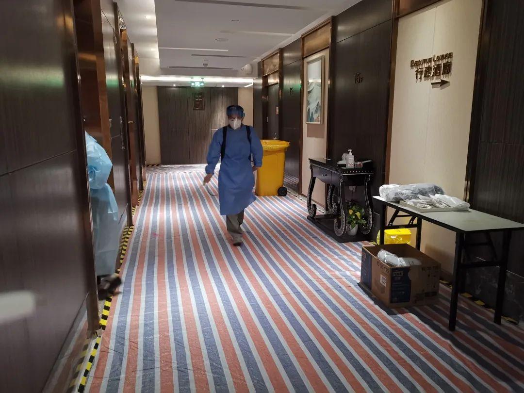 統籌組克服困難,用最短的時間將3600平方米的公區按照要求鋪設地膜進行防護;供餐組負責為醫護人員準備一日三餐,在此次接待中累計制作盒飯15884份;保障組負責酒店后勤服務和安全保障工作,他們化身“環衛大白”清理醫療垃圾;消殺組按照駐店醫療組專家的意見,專人每天對各區域進行三次消毒工作,累計消毒公區面積28萬余平方米......