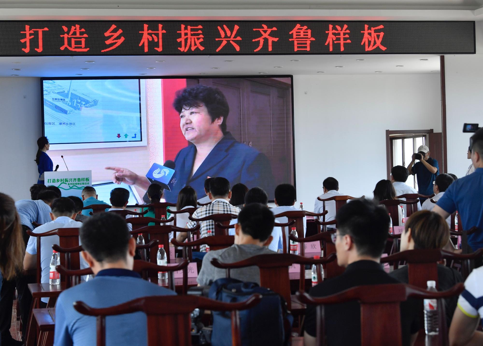 儀式現場,通過視頻直播連線了濟南市章丘區三澗溪村黨支部書記高淑貞、臨沂市蘭陵縣代村黨委書記王傳喜,共同分享打造鄉村振興齊魯樣板的經驗,充滿互聯網思維的快手大V“山東萊蕪養蜂人”還介紹了他的創富經驗。