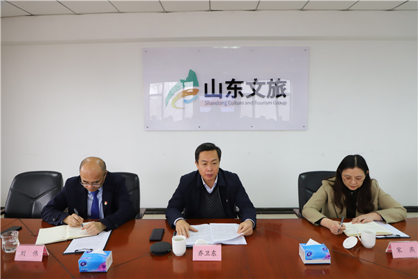 山東文旅集團組織人力資源部(黨委辦公室)部長于卉,山鄉集團領導班子成員及總部各部室全體人員參加會議。