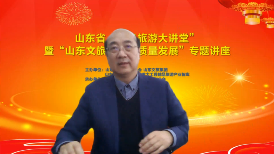 專題講座旨在貫徹落實黨的二十大精神,順應新階段、迎接新挑戰、貼近新需求、注入新能量、謀求新發展,探討后疫情時代山東文旅產業高質量發展的方向和路徑,把握政策動向、分享研究成果、交流實踐經驗。講座采用線上線下結合的形式。中國旅游協會副會長、山東省旅游行業協會會長、山東大學旅游產業研究院院長王德剛教授,山東旅游職業學院黨委書記陳國忠,山東省旅游行業協會副會長兼秘書長尚玉軒,省旅游設計院院長孫曉靜,省旅游行業協會和旅游規劃分會秘書處、省旅游設計院全體員工現場參加會議。各市旅游協會(聯合會)、各分會組織會員單位通過線上視頻會議形式收聽收看講座。尚玉軒主持會議。