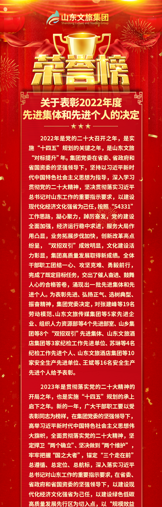 山東文旅集團2022年度先進集體和先進個人榮譽榜揭曉