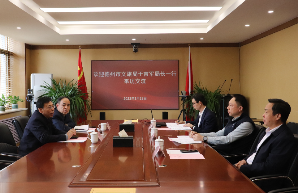 3月23日,德州市文化和旅游局黨組書記、局長于吉軍一行到訪山東文旅集團,集團黨委副書記、總經理丁藝會見。