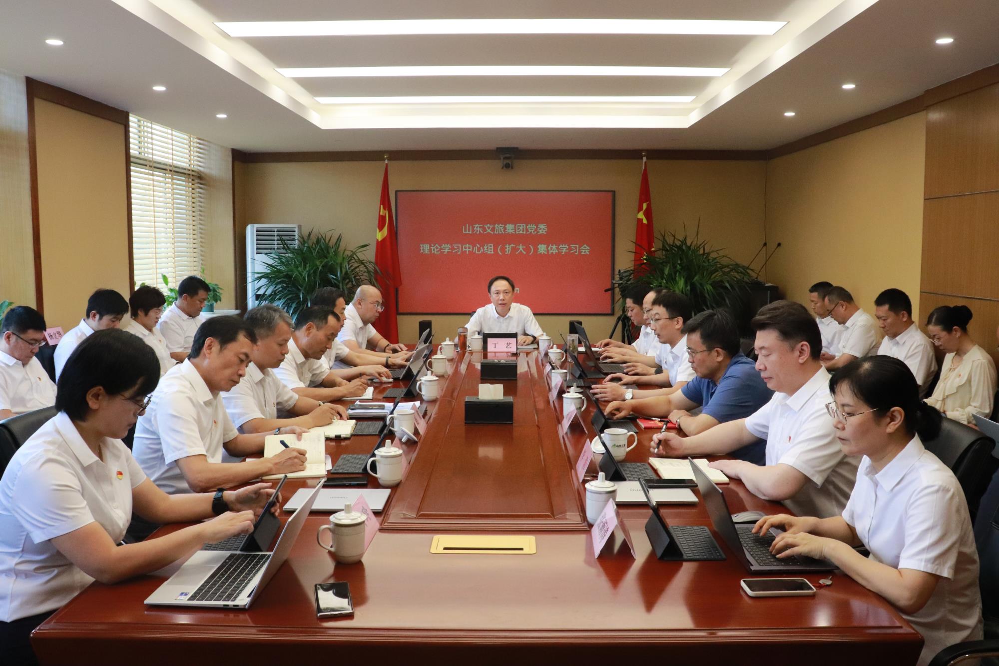 7月19日,山東文旅集團黨委書記、董事長丁藝主持召開集團黨委理論學習中心組(擴大)2023年第7次集體學習會。會議主要學習《中國共產黨章程》、全心全意為人民服務的根本宗旨、民主集中制、習近平總書記關于“以學正風”有關要求的重要講話精神。