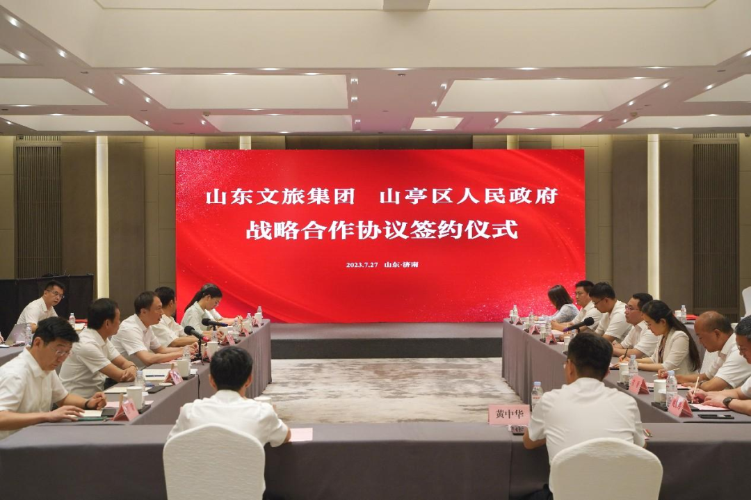 7月27日,山東文旅集團(tuán)與山亭區(qū)人民政府戰(zhàn)略合作協(xié)議簽約儀式在濟(jì)南舉行。山東文旅集團(tuán)黨委書記、董事長(zhǎng)丁藝,山亭區(qū)委副書記、區(qū)長(zhǎng)劉洪鵬出席并講話。山東文旅集團(tuán)黨委副書記、工會(huì)主席季將主持。