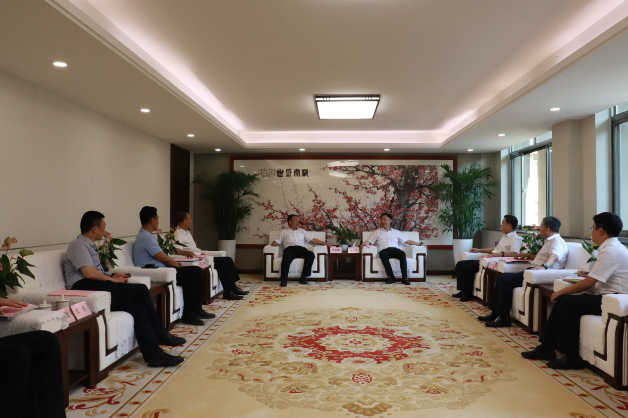 8月4日,水發集團黨委書記、董事長劉志國一行到訪山東文旅集團,集團黨委書記、董事長丁藝會見。