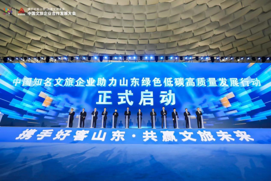 開幕式上,國內重點文旅企業分享了投資山東經驗,知名文旅企業發布在魯合作需求,視頻發布山東重點文旅招商項目,為山東20家領航型文旅企業、山東十佳民營文旅企業領軍人物授牌。山東文旅集團入選首批20家領航型文旅企業,并在省文旅廳等部門指導下,發起組建山東文旅企業聯盟,涵蓋全省旅游景區、酒店、文旅集團、文化企業等近100家企業。另外,山東文旅集團與國內其他11家知名文旅企業共同啟動中國知名文旅企業助力山東綠色低碳高質量發展行動。