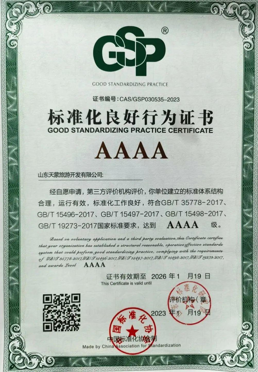一直以來,天蒙景區(qū)從戰(zhàn)略高度將“標準化引領(lǐng)服務質(zhì)量提升”的理念貫穿于景區(qū)發(fā)展的全過程。景區(qū)在2019年通過省級服務標準化試點項目驗收的基礎(chǔ)上,于2021年度成功立項了國家級服務業(yè)標準化試點項目,又在2022年3月啟動了標準化良好行為企業(yè)創(chuàng)建工作。2023年獲評4A級“標準化良好行為企業(yè)”,成為臨沂市首家榮獲此殊榮的旅游景區(qū)。