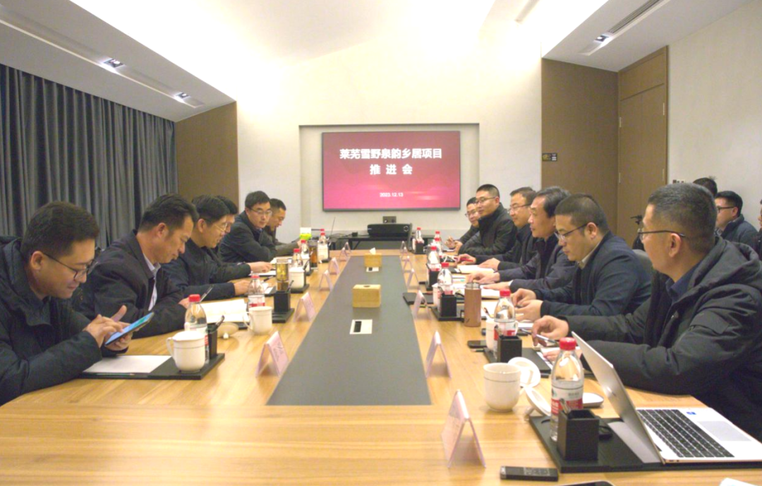 12月13日,萊蕪雪野泉韻鄉居項目推進會在山鄉集團雪野項目駐地召開。萊蕪區委副書記王寧,區政府副區長齊巍巖,山東文旅集團首席戰略官、山鄉集團黨委書記、董事長張建峰參加會議。