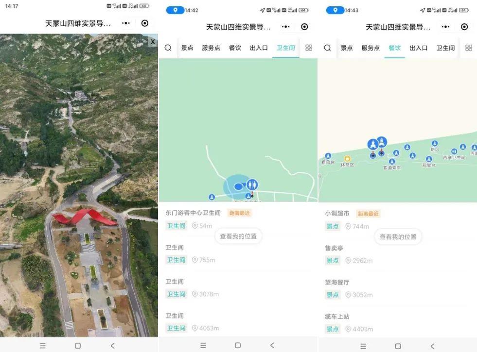天蒙景區精準、矢量地圖標注了各類型景點、服務點,推薦游覽路線及旅游景點信息介紹,并能根據游客位置和興趣愛好,定點、定向自動推送周圍景點相關的知識點自動語音播報,還可以發送區域擁堵、緊急通知提醒。游客可以選定目的地,查看從當前位置到指定位置的導航線路。遇到危險時,游客還可通過微信小程序向景區管理系統發送緊急求助。