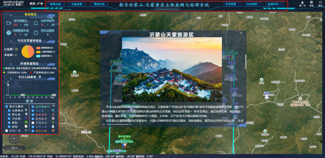 2023年10月20日,國家重點研發計劃“復雜山岳景區游客全域位置感知與精準服務”應用運行啟動儀式在天蒙景區舉辦。經過兩個多月的應用實踐,北斗項目研究成果“數字沂蒙山-天蒙景區立體監測與指揮系統”及“天蒙導覽微信小程序”取得了顯著的成果。