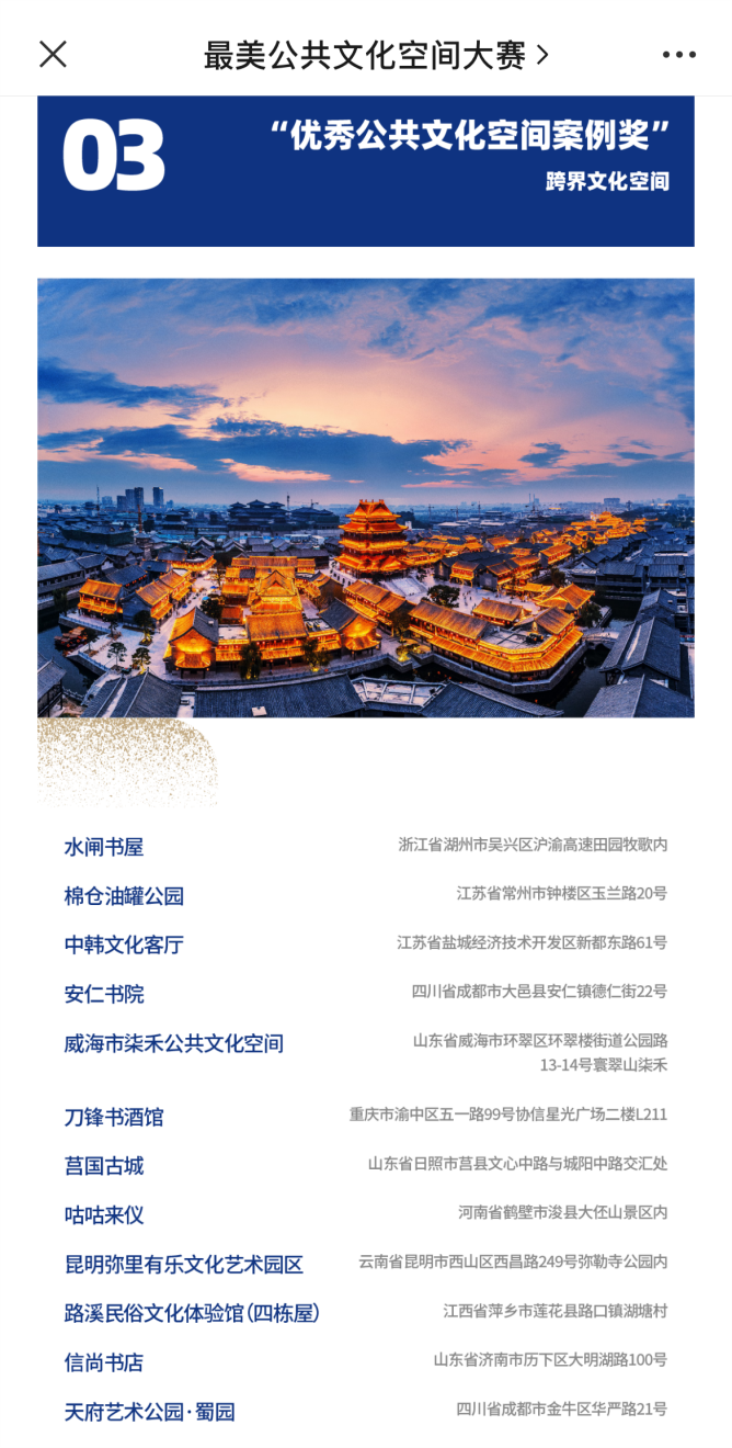 大賽旨在為全國公共文化一體化發(fā)展發(fā)掘并樹立一批樣板案例,為營造公共文化空間積蓄“設計力量”。信尚書店所屬的濟南市歷下區(qū)共有11個優(yōu)秀空間通過預審,經過專家初評、復評和終評,最終產生“優(yōu)秀公共文化空間案例獎”2個。